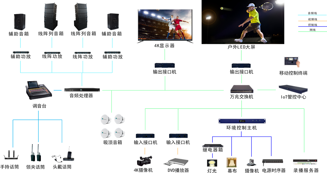 多功能应用:丰富的音响类型可保证体育馆的演出、比赛等各种需求